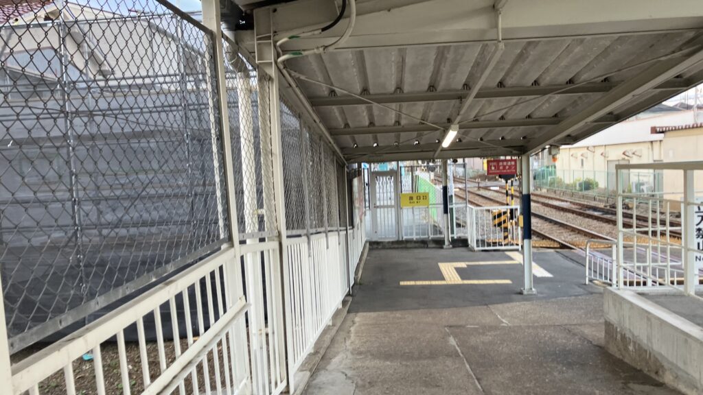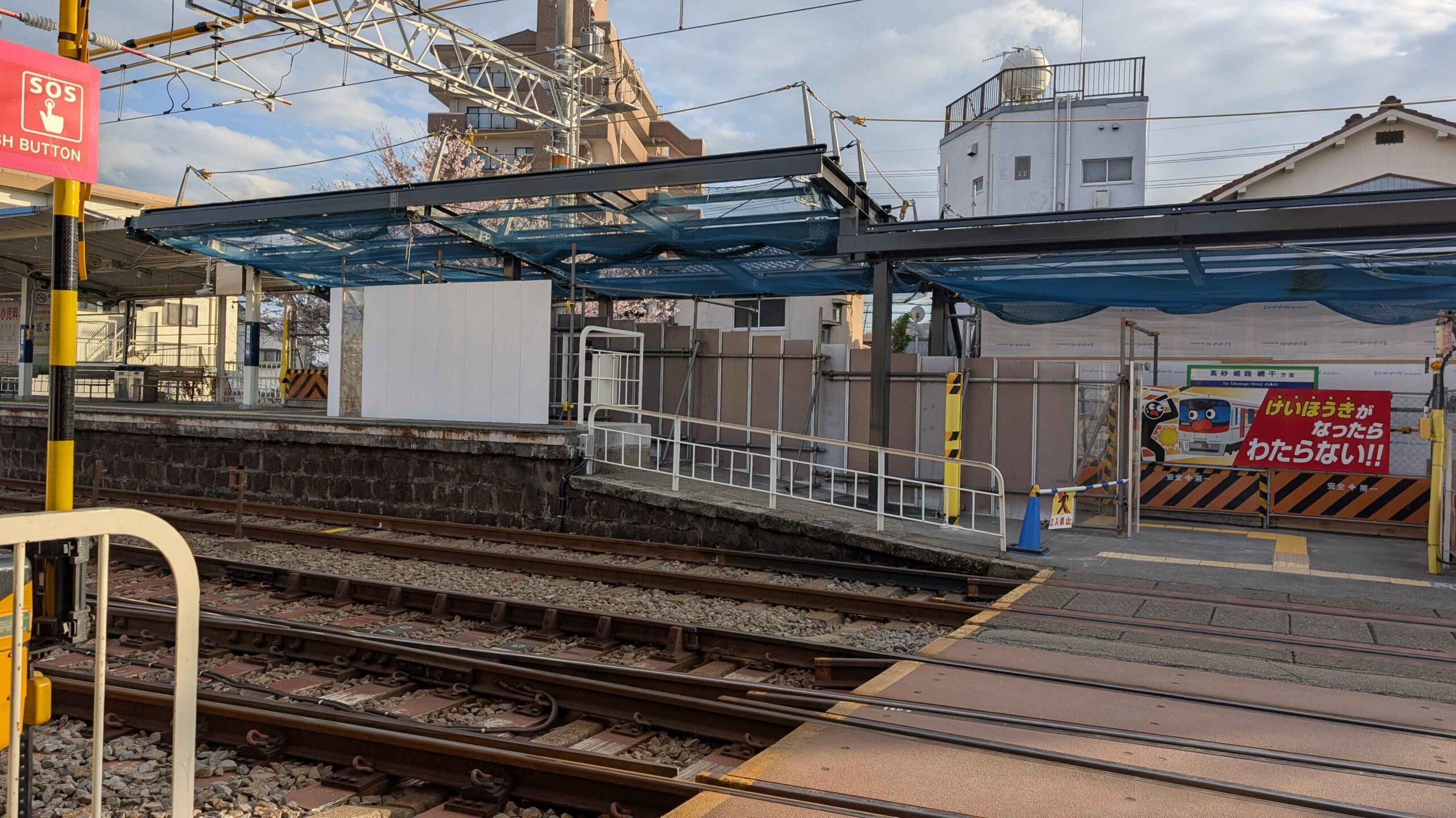 こちらは下りホームの構内踏切付近の坂です。旧上屋が柱ごと完全に撤去されたのち、新たな上屋用の鉄骨が設置されています。